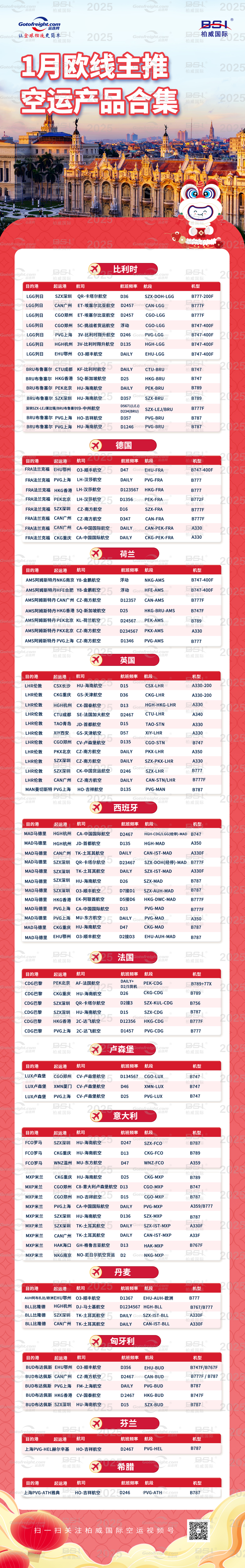 2025年1月柏威国际空运欧线产品