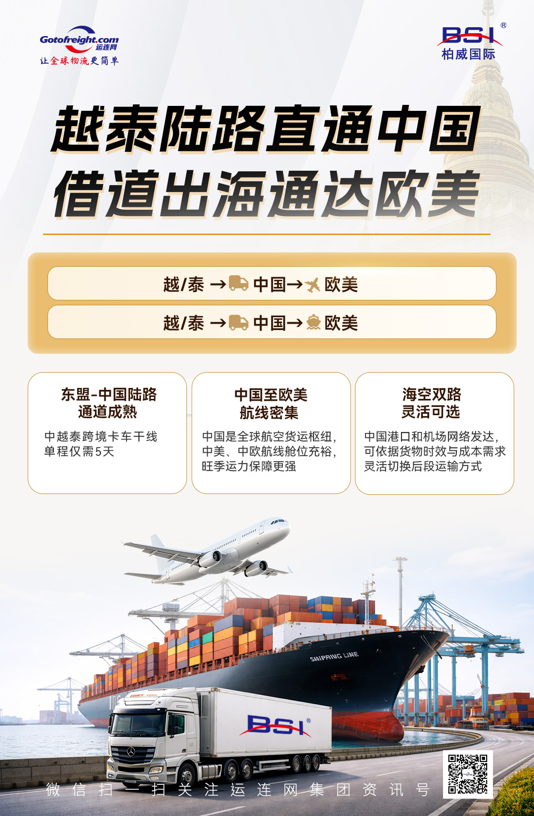 运连网・柏威国际全新推出「越 / 泰 - 中国 - 欧美」多式联运解决方案,为跨境贸易企业打通稳定、高效、高性价比的跨境物流通道,助力企业高效抢占欧美市场先机!